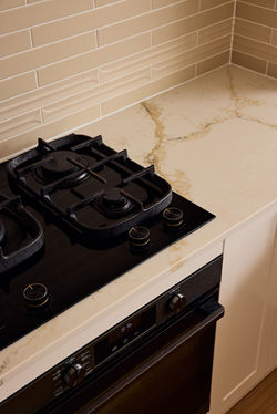 Additional Features | Stone waterfall end, 200mm cargo spice pull out, under sink pull out bin.​​